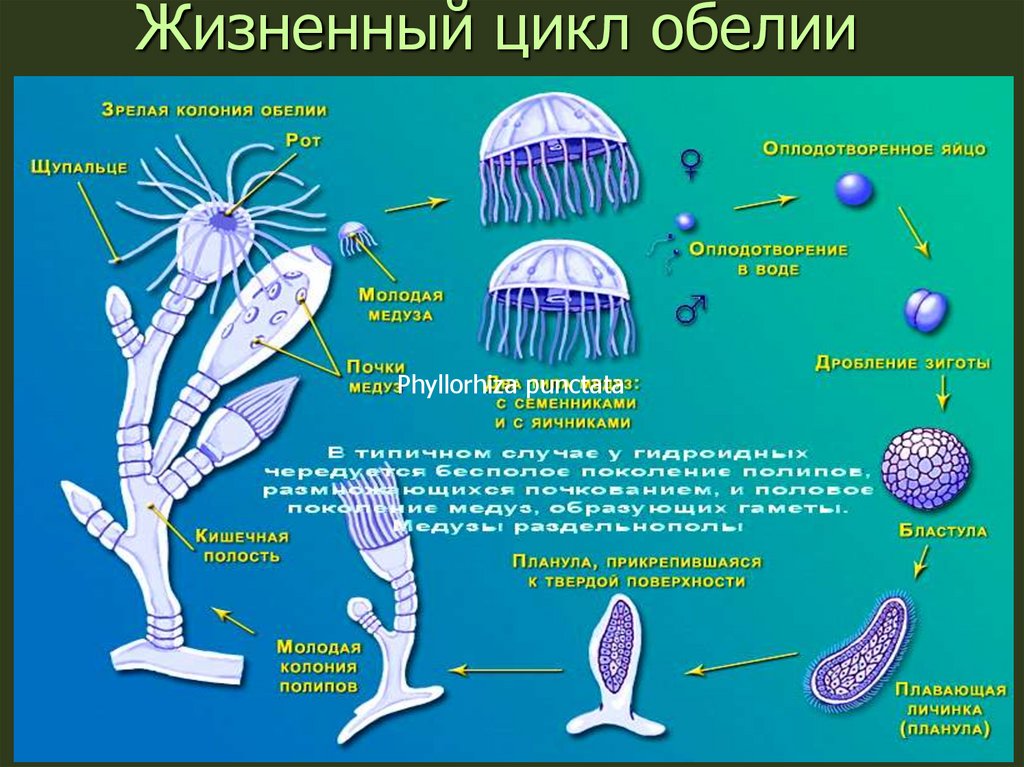 Жизненный цикл обелииPhyllorhiza punctata