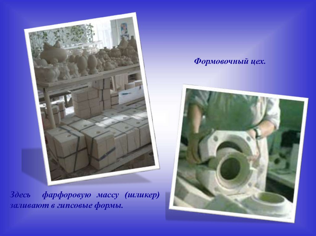 Формовочный цех.Здесь фарфоровую массу (шликер)