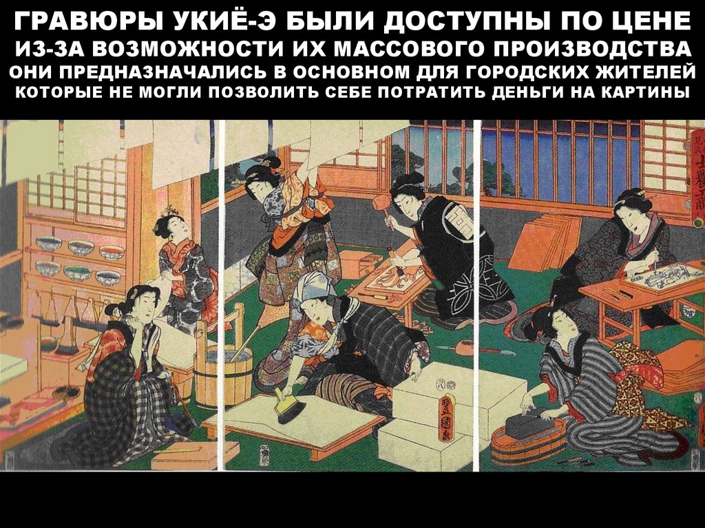ГРАВЮРЫ УКИЁ-Э БЫЛИ ДОСТУПНЫ ПО ЦЕНЕИЗ-ЗА ВОЗМОЖНОСТИ ИХ МАССОВОГО ПРОИЗВОДСТВА