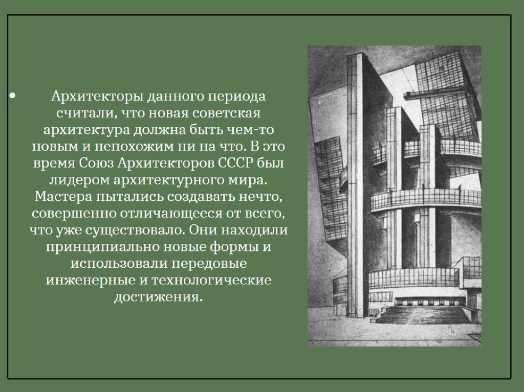 Русский авангард. Супрематизм. Конструктивизм. Развитие советской архитектуры и дизайна 1917-1933 гг.
