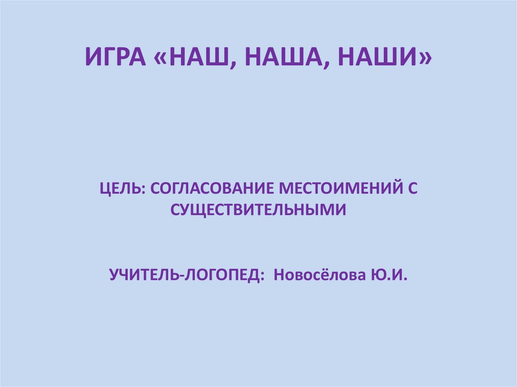 УЧИТЕЛЬ-ЛОГОПЕД: Новосёлова Ю.И.