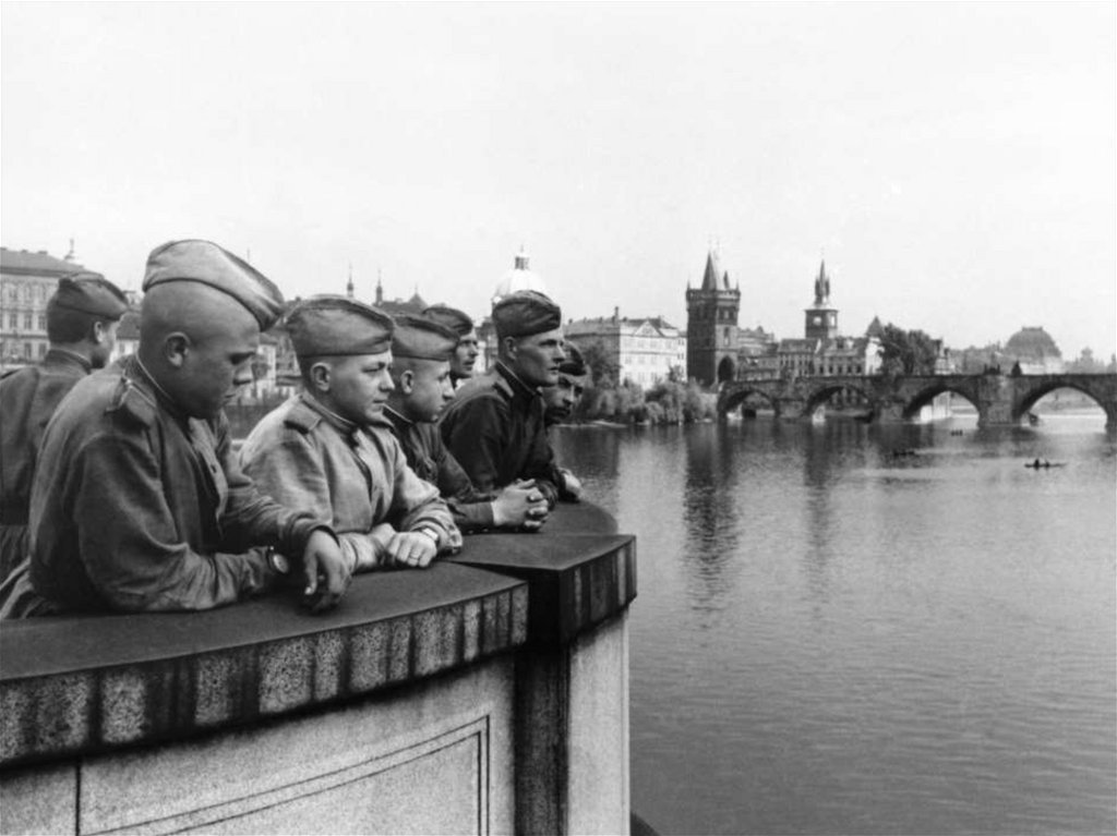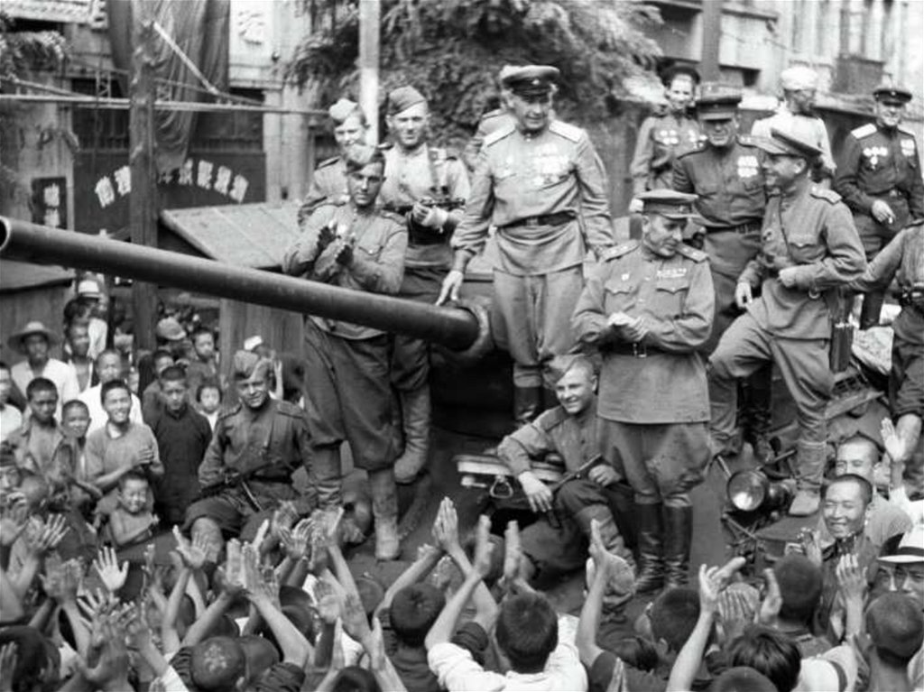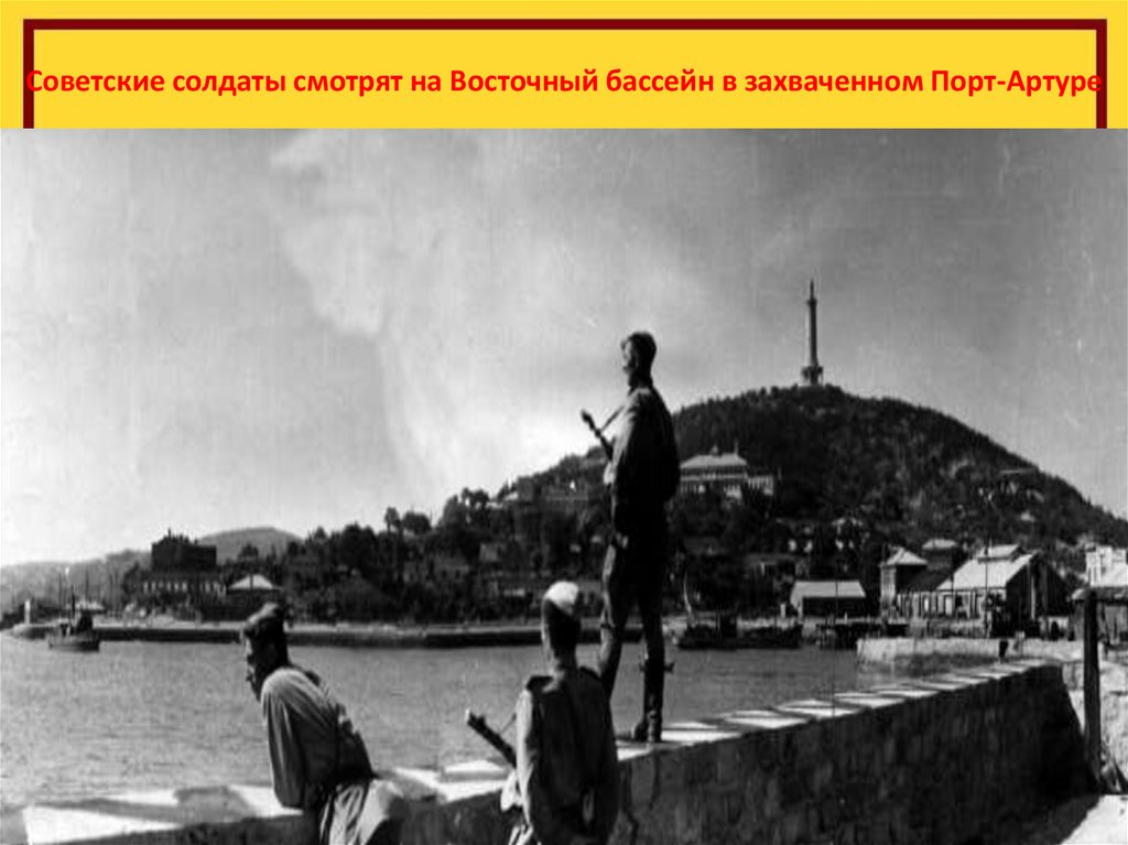Советские солдаты смотрят на Восточный бассейн в захваченном Порт-Артуре17.