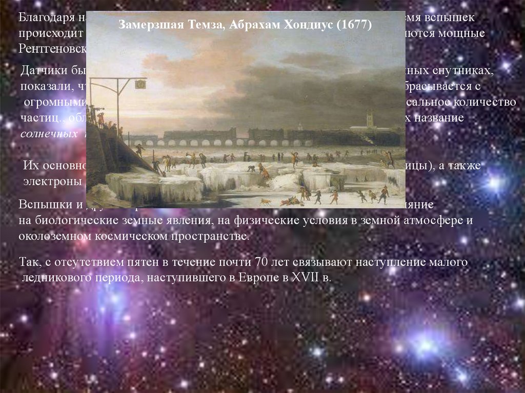 Благодаря наблюдениям со спутников ученые установили, что во время вспышекЗамерзшая Темза, Абрахам Хондиус (1677)
