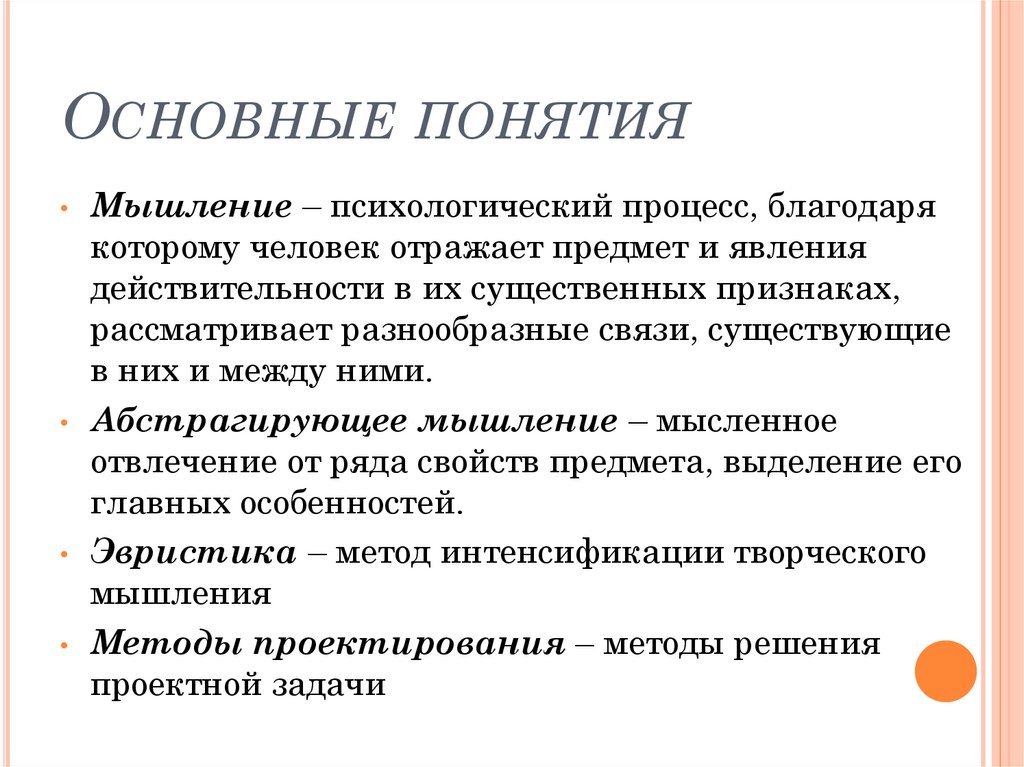 ОСНОВНЫЕ ПОНЯТИЯМышление – психологический процесс, благодаря