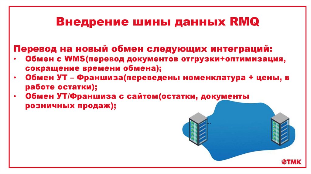 Внедрение шины данных RMQПеревод на новый обмен следующих интеграций: