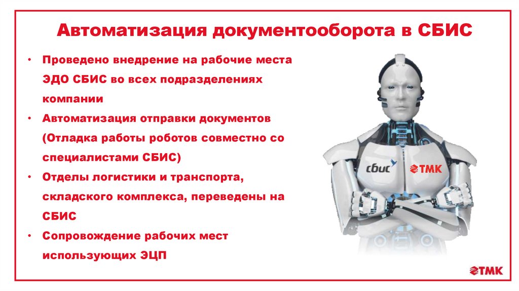 Автоматизация документооборота в СБИС• Проведено внедрение на рабочие места