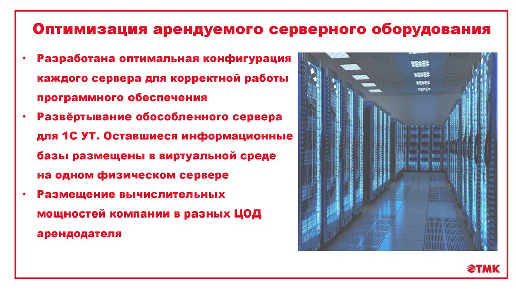 Оптимизация арендуемого серверного оборудования• Разработана оптимальная конфигурация