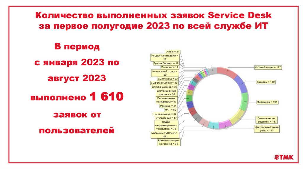 Количество выполненных заявок Service Deskза первое полугодие 2023 по всей службе ИТ