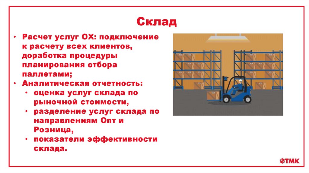 Склад• Расчет услуг ОХ: подключение