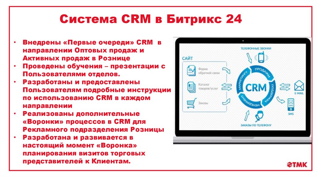 Система CRM в Битрикс 24• Внедрены «Первые очереди» CRM в