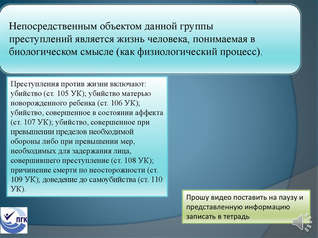 Непосредственным объектом данной группыпреступлений является жизнь человека, понимаемая в