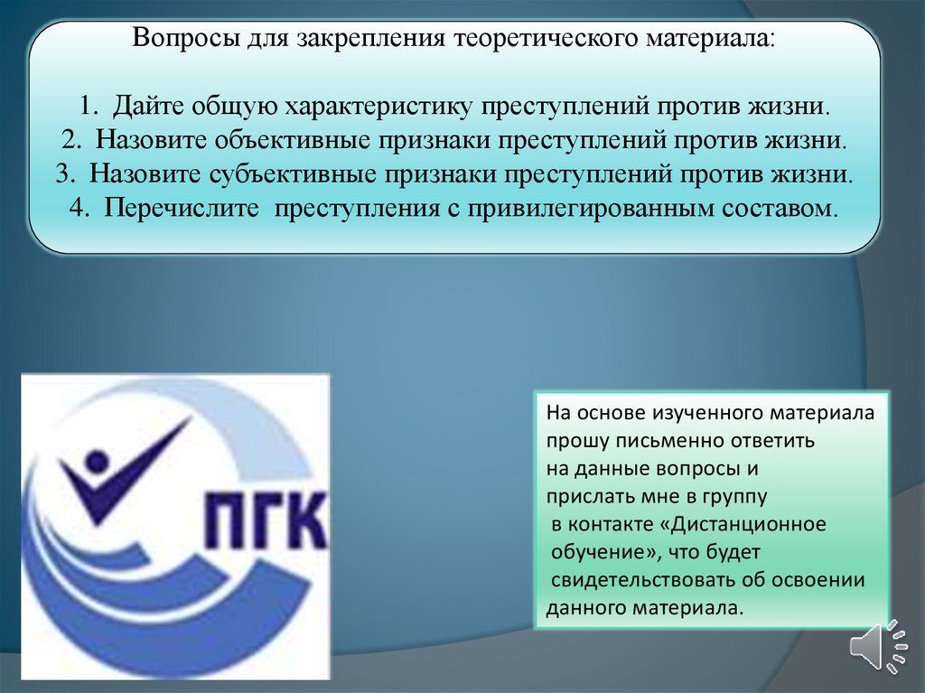 Вопросы для закрепления теоретического материала:1. Дайте общую характеристику преступлений против жизни.