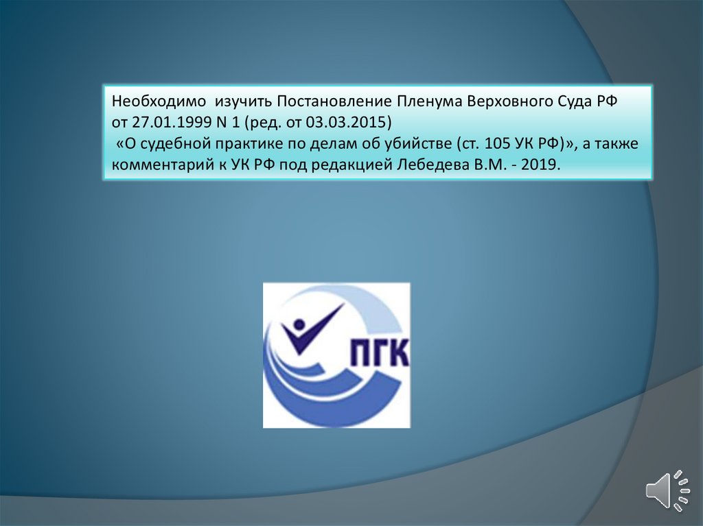 «О судебной практике по делам об убийстве (ст. 105 УК РФ)», а также