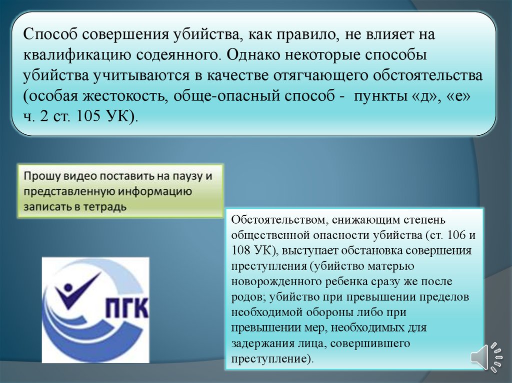 3) убийство при смягчающих обстоятельствах (ст. 106, 107, 108 УК).