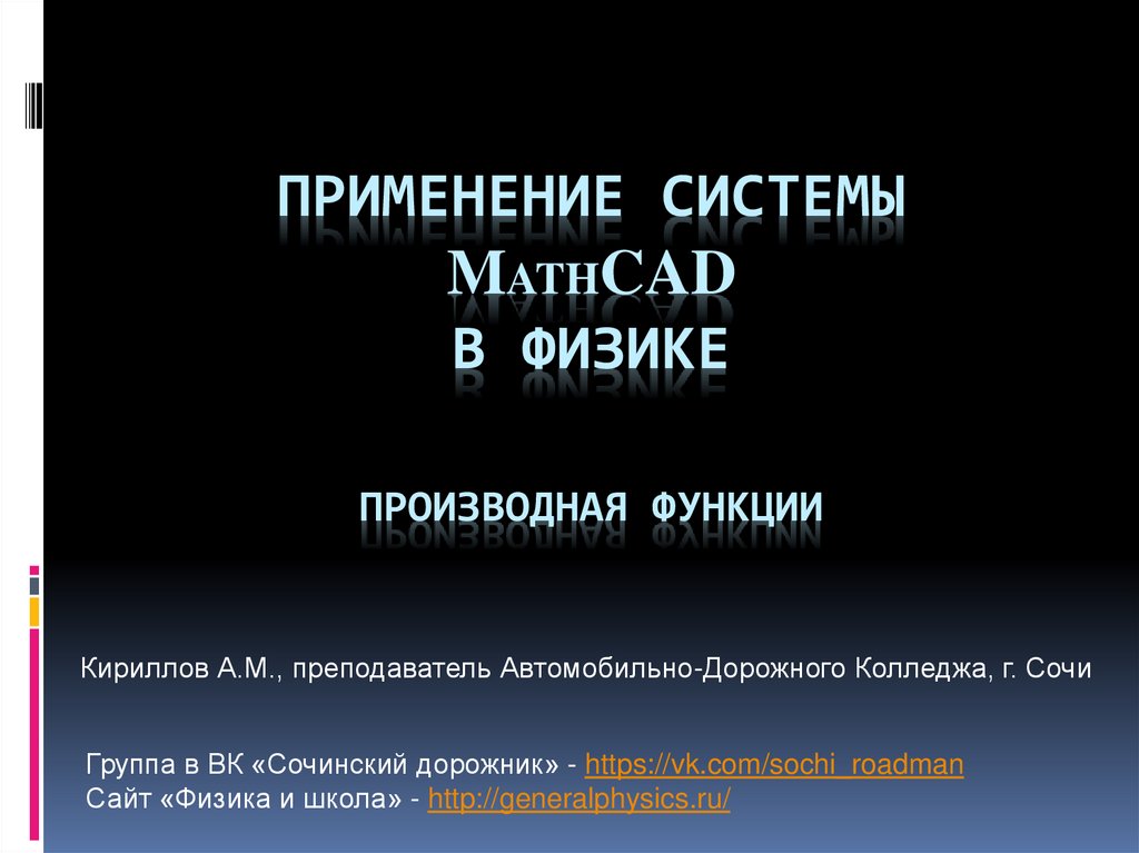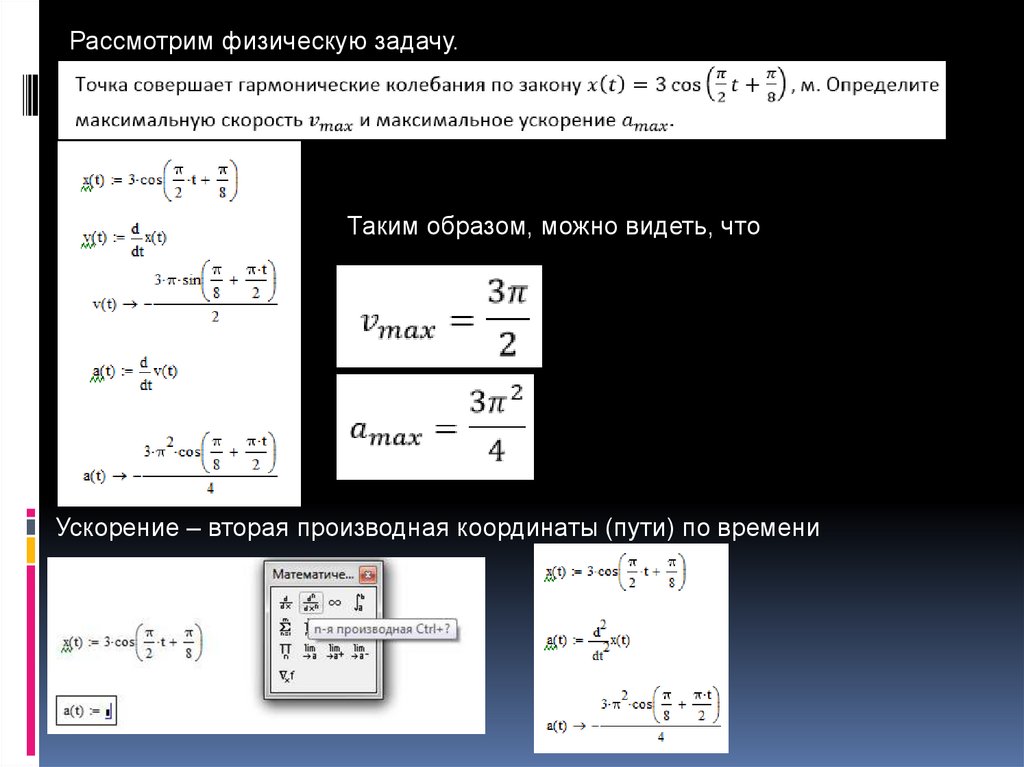Производная функции. Применение системы MathCAD в физике (ч. 8)