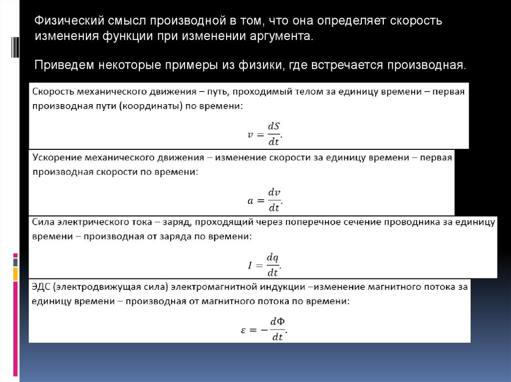 Приведем некоторые примеры из физики, где встречается производная.