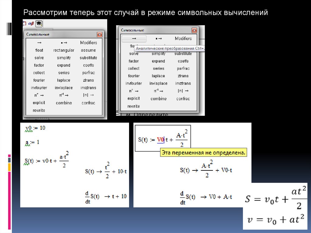 Рассмотрим теперь этот случай в режиме символьных вычислений5.