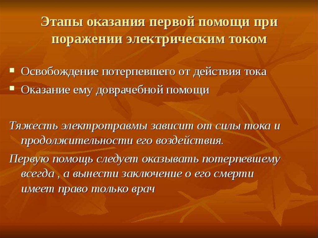 Оказание первой до врачебной помощи при воздействии электричества
