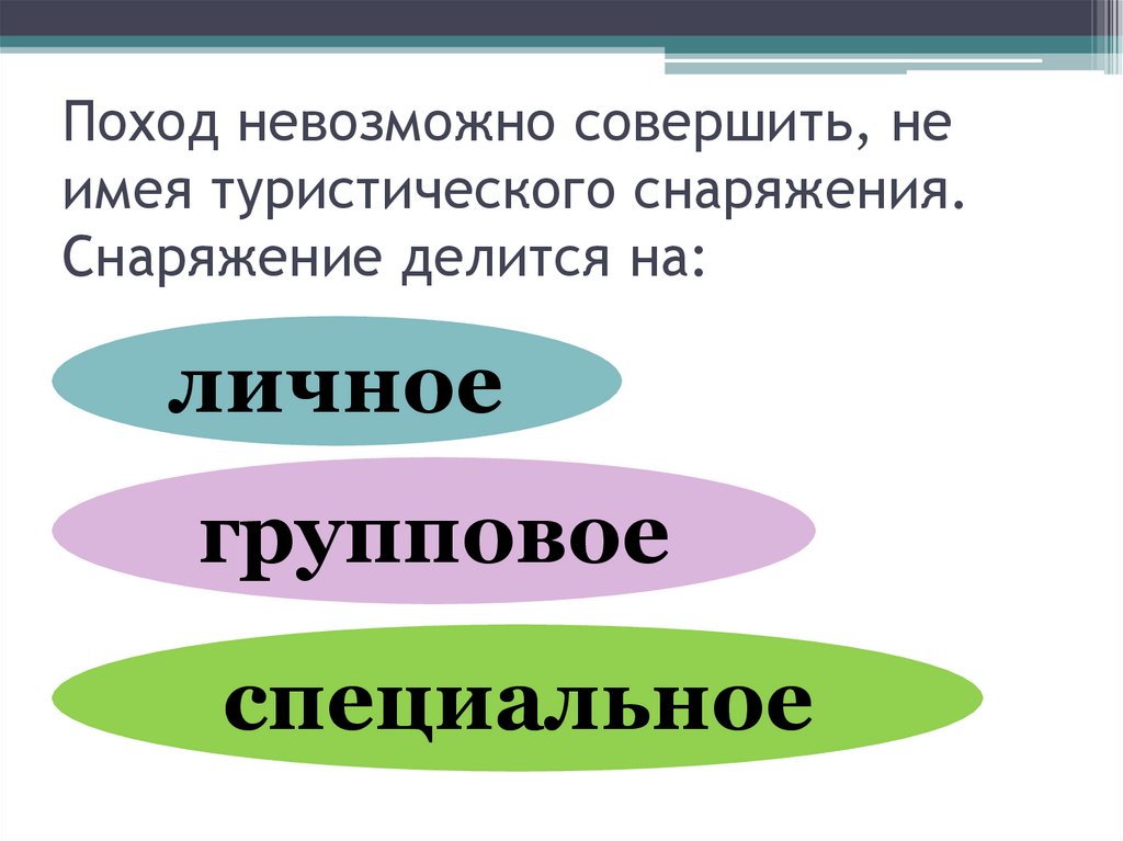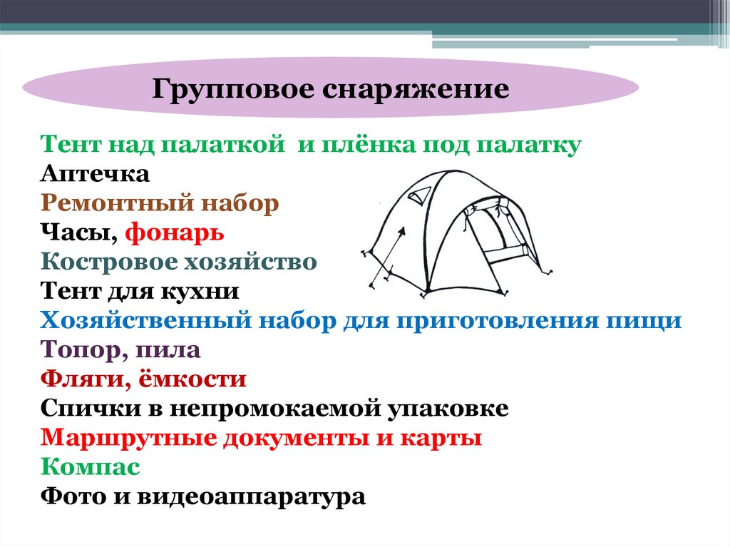 снаряжение, чтобы не брать лишнего, но