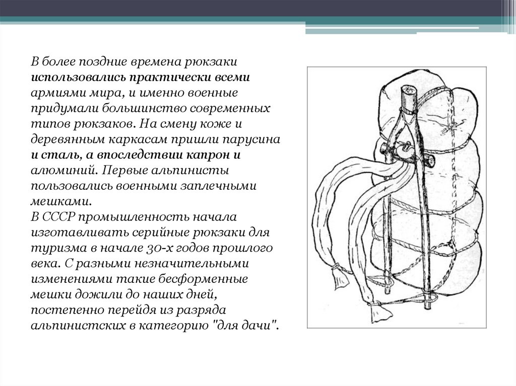 В более поздние времена рюкзакииспользовались практически всеми