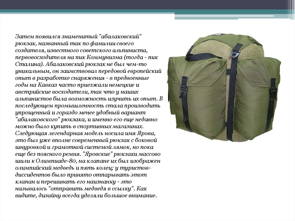 Сталина). Абалаковский рюкзак не был чем-то