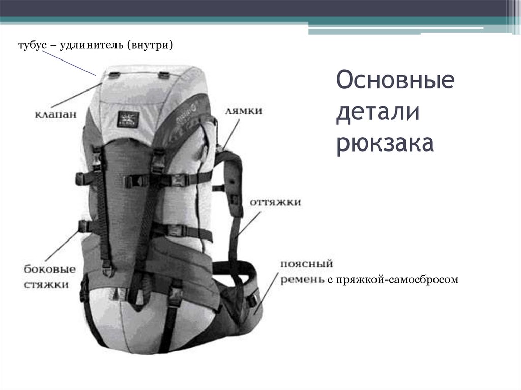 Рюкзак – заплечный вещевой мешокдля переноски снаряжения и грузов.