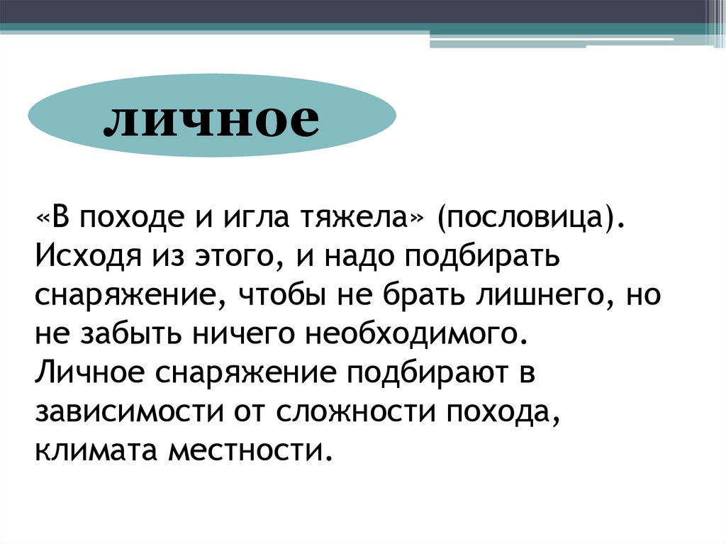 личное«В походе и игла тяжела» (пословица).