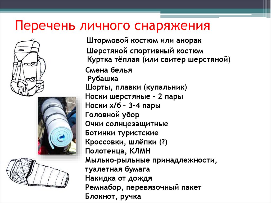 Перечень личного снаряженияШтормовой костюм или анорак