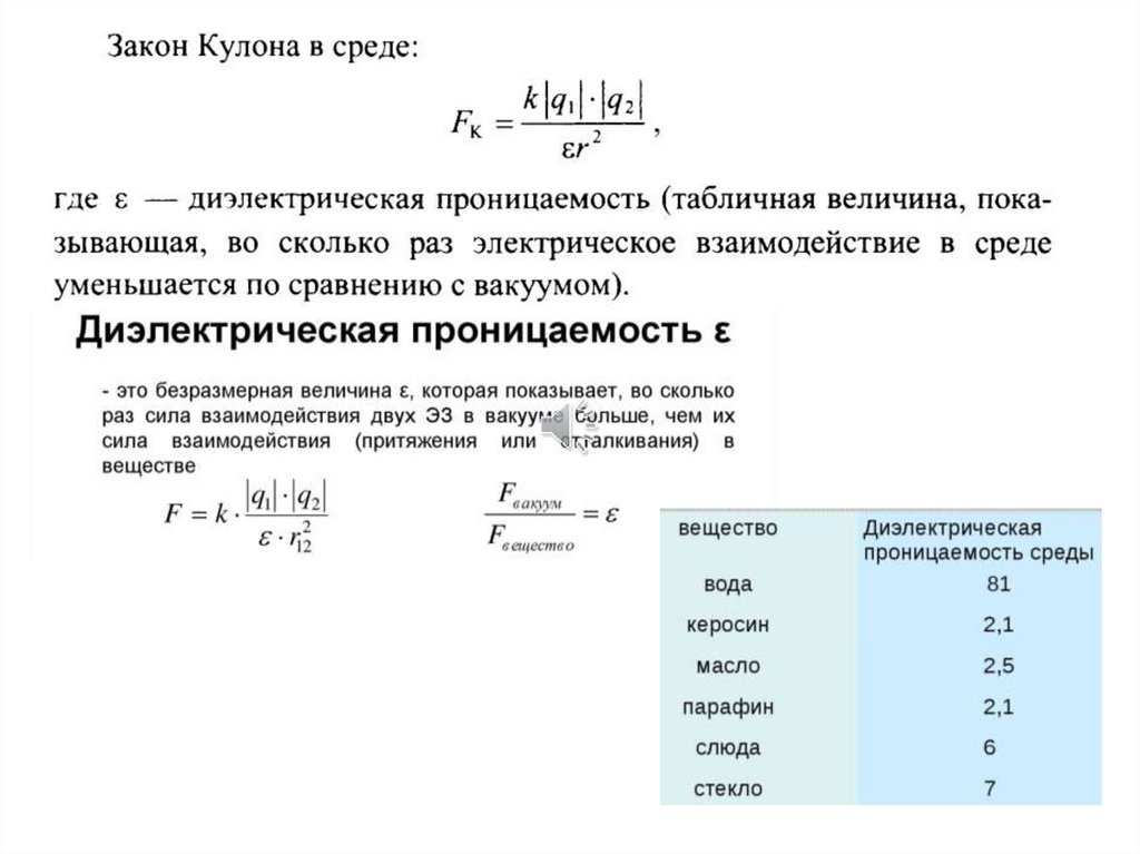 Основной закон электростатики - закон Кулона