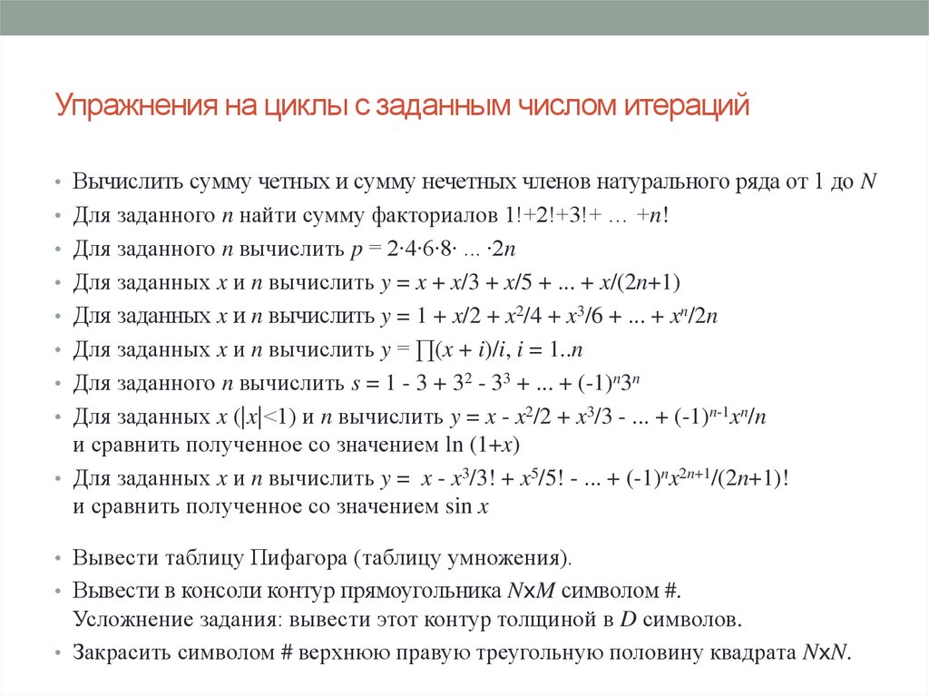 Программирование на языке высокого уровня. Лекция 2. Циклы с заданным числом итераций