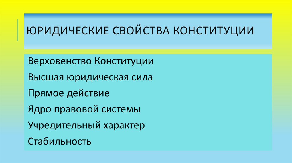 ЮРИДИЧЕСКИЕ СВОЙСТВА КОНСТИТУЦИИВерховенство Конституции