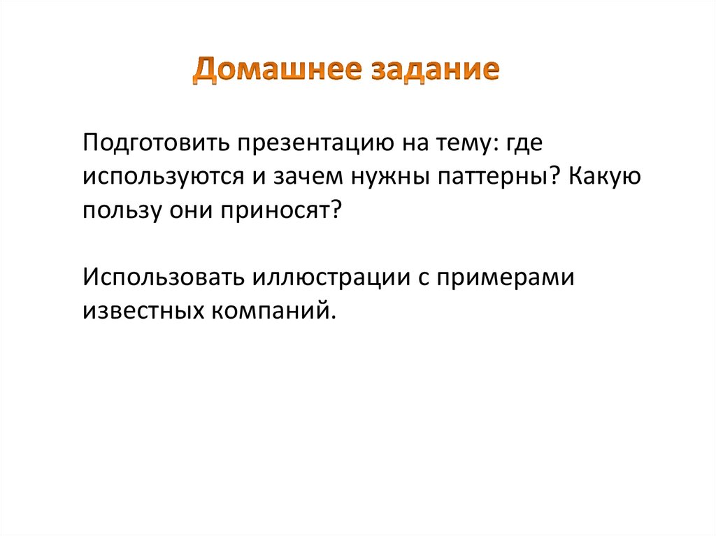 Подготовить презентацию на тему: гдеиспользуются и зачем нужны паттерны? Какую