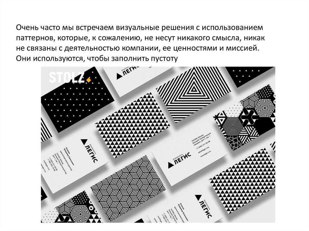 Очень часто мы встречаем визуальные решения с использованиемпаттернов, которые, к сожалению, не несут никакого смысла, никак