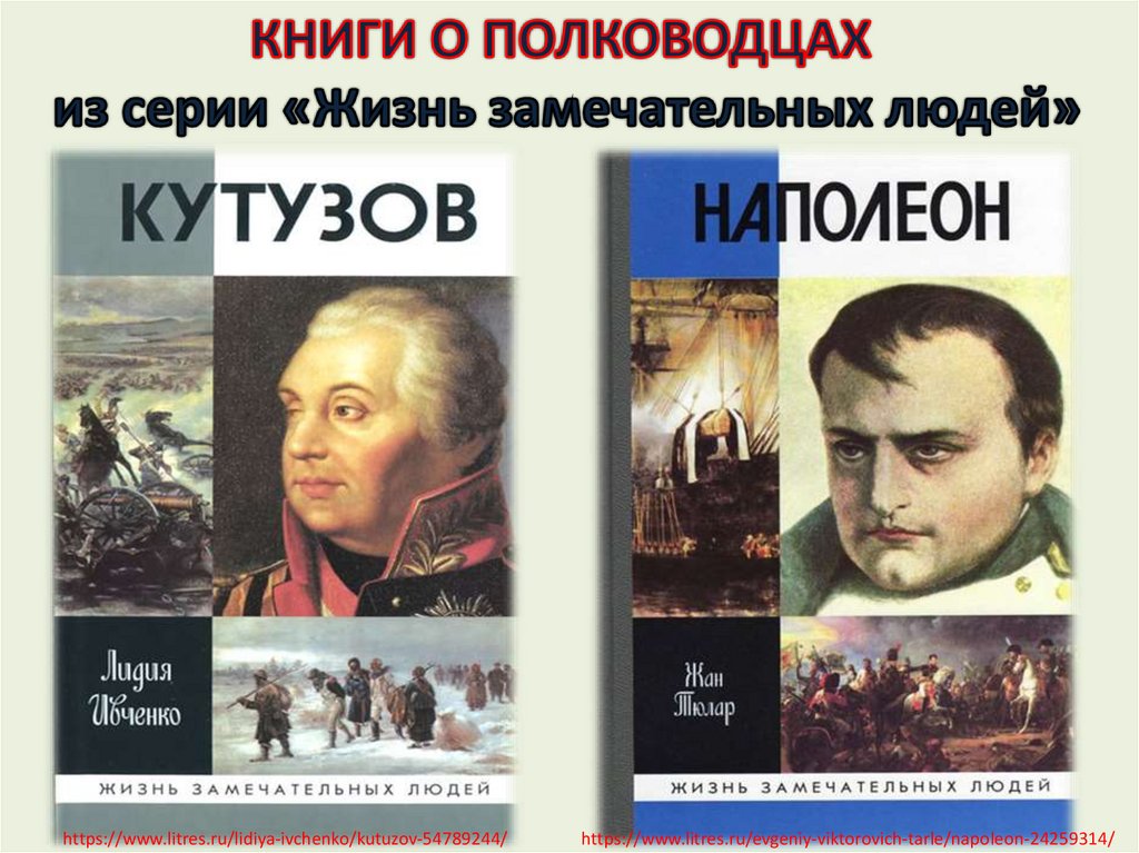 https://www.litres.ru/lidiya-ivchenko/kutuzov-54789244/https://www.litres.ru/evgeniy-viktorovich-tarle/napoleon-24259314/