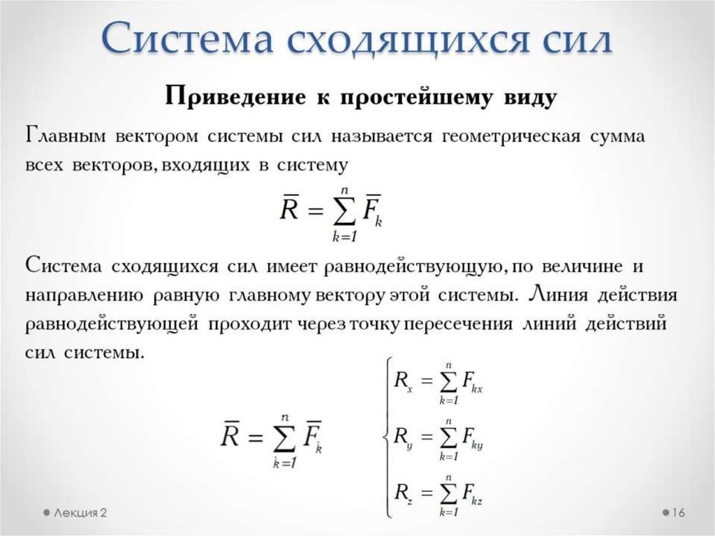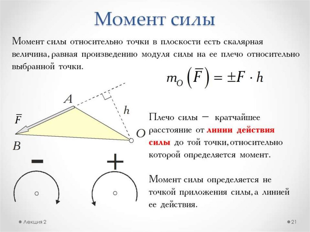 Простейшие системы сил. Момент силы (лекция 2)