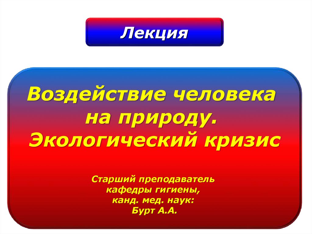 Воздействие человека на природу. Экологический кризис. Лекция 2