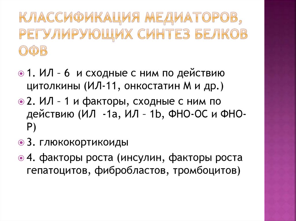 действию (ИЛ -1а, ИЛ – 1b, ФНО-ОС и ФНОР)