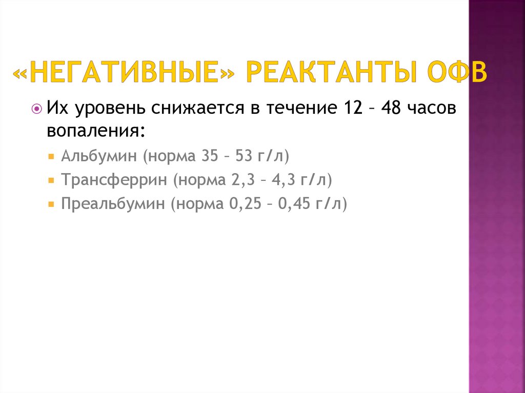Преальбумин (норма 0,25 – 0,45 г/л)