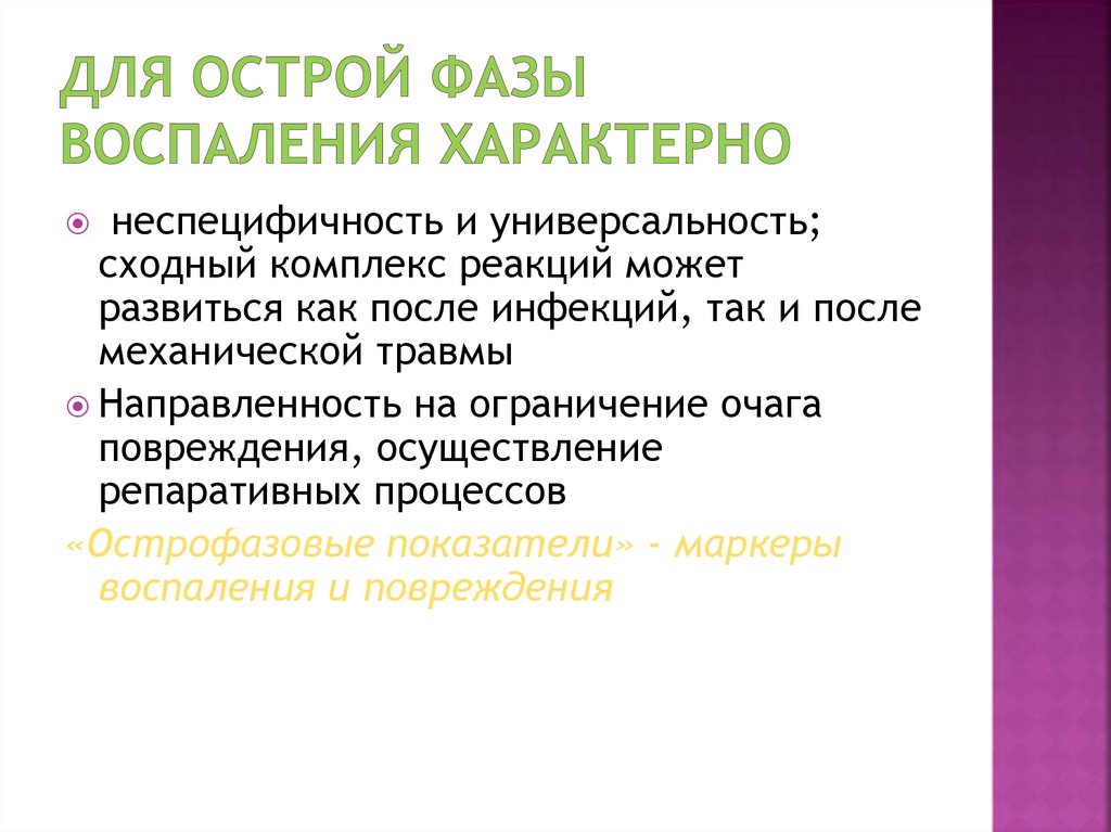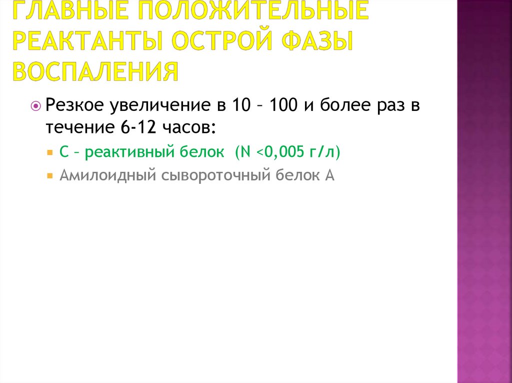 Клинико-лабораторные признаки ответа острой фазы воспаления