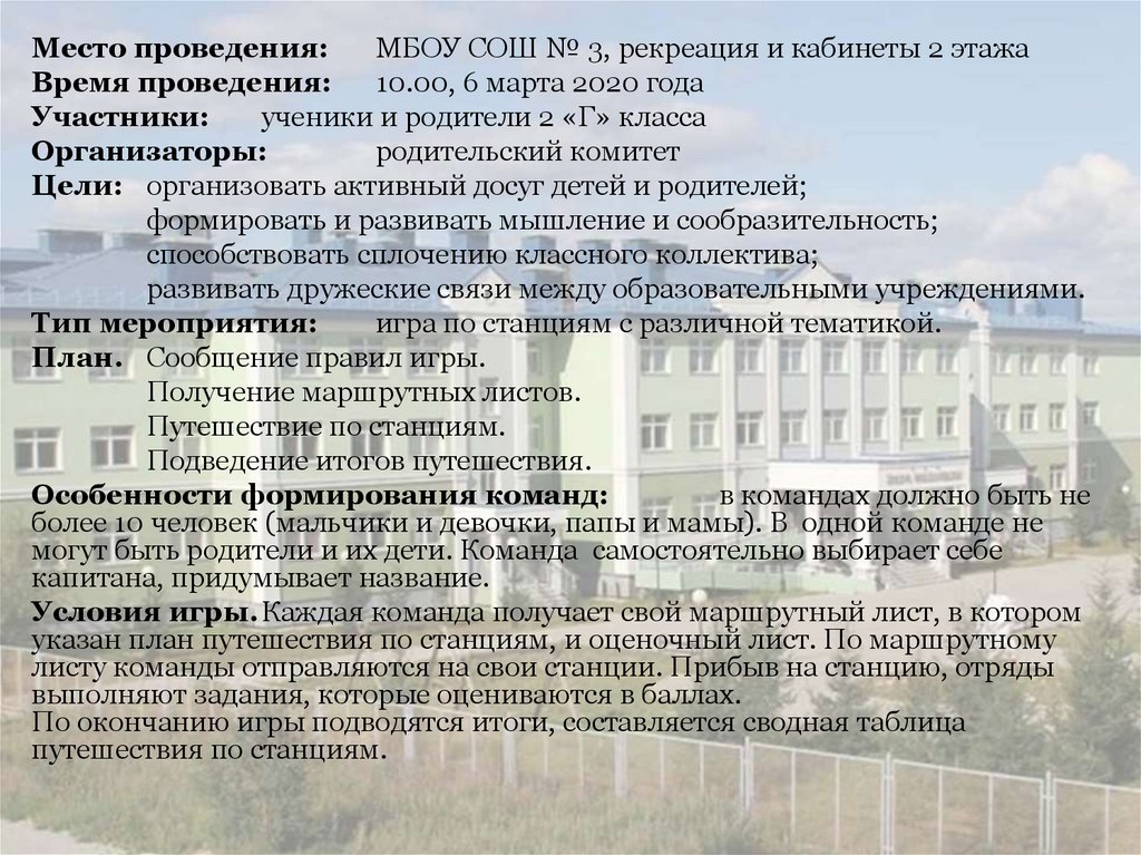 Условия игры.Каждая команда получает свой маршрутный лист, в котором