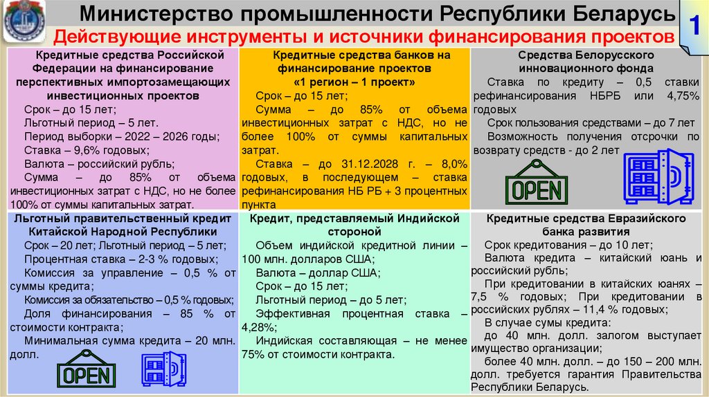 Министерство промышленности Республики БеларусьДействующие инструменты и источники финансирования проектов
