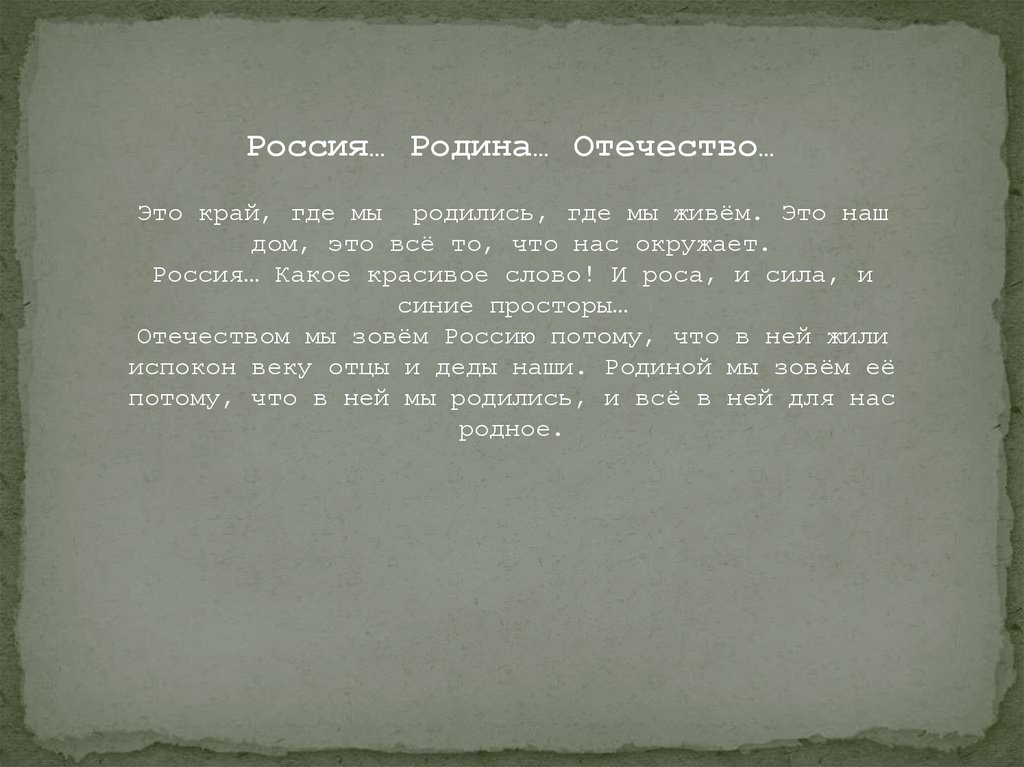 Россия… Родина… Отечество…Это край, где мы родились, где мы живём. Это наш