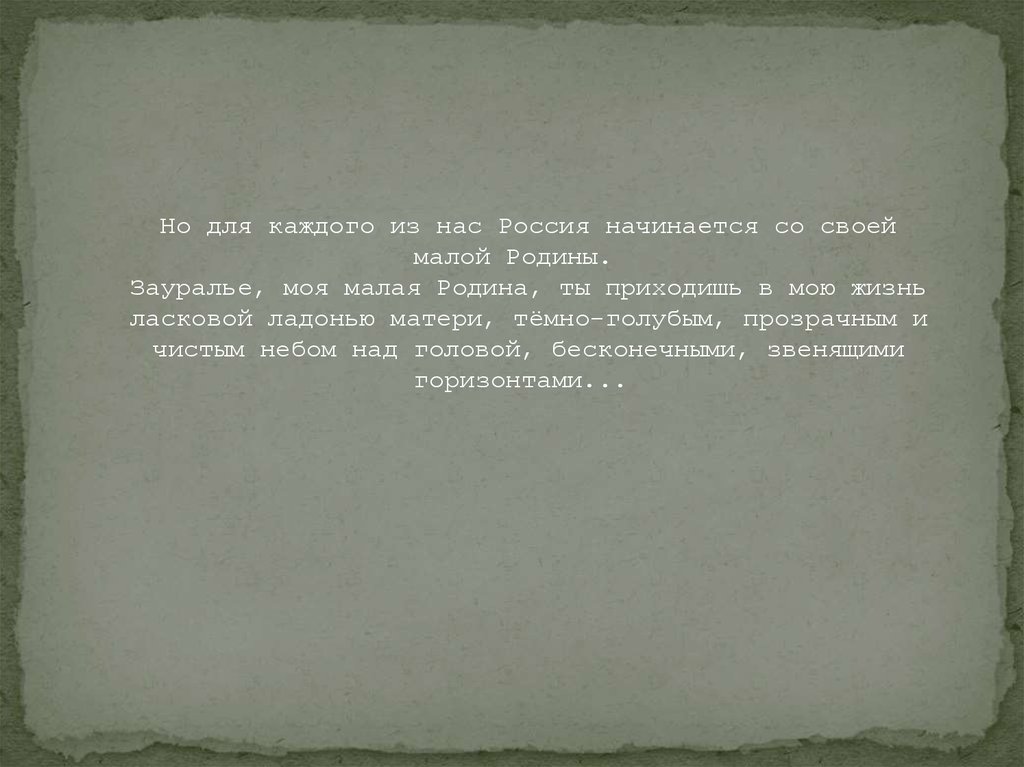 Но для каждого из нас Россия начинается со своеймалой Родины.