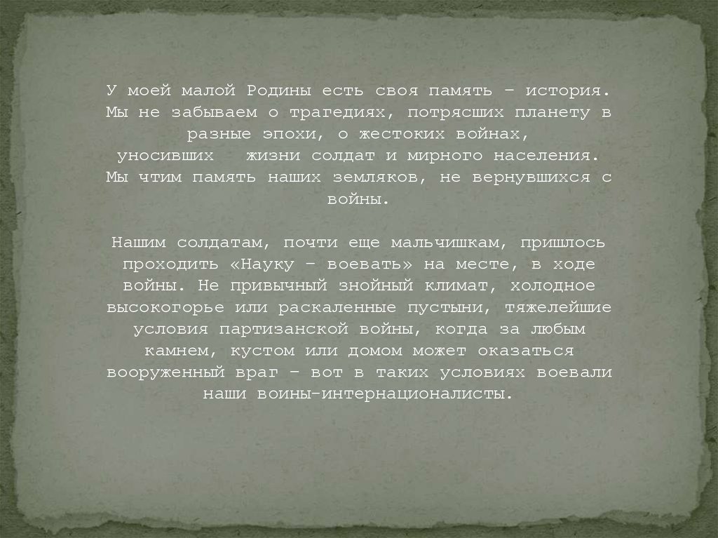 У моей малой Родины есть своя память – история.Мы не забываем о трагедиях, потрясших планету в