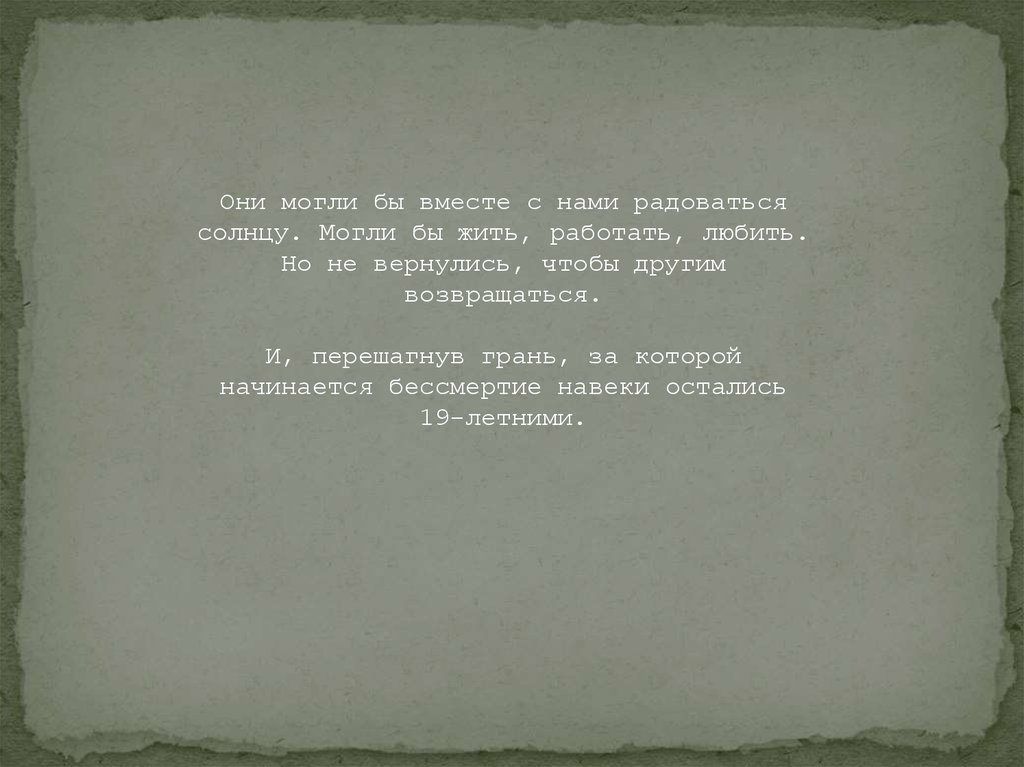 Они могли бы вместе с нами радоватьсясолнцу. Могли бы жить, работать, любить.