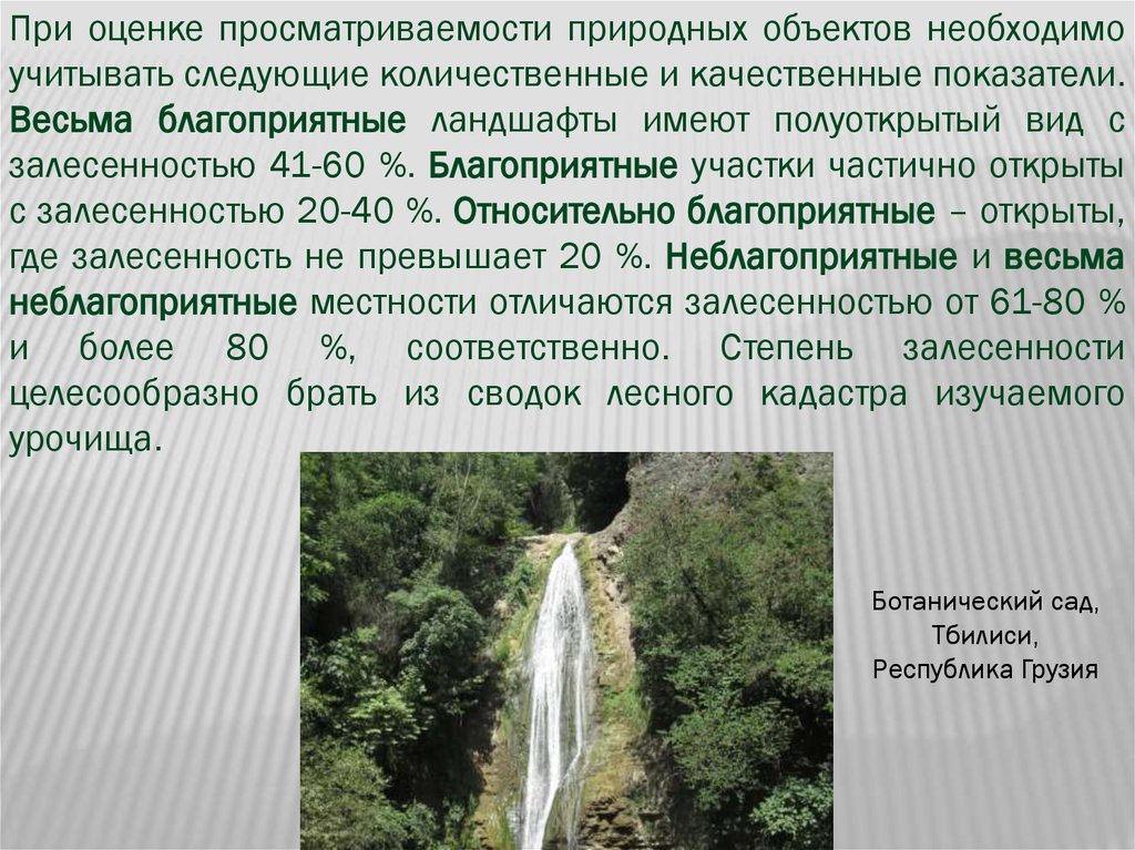 При оценке просматриваемости природных объектов необходимоучитывать следующие количественные и качественные показатели.