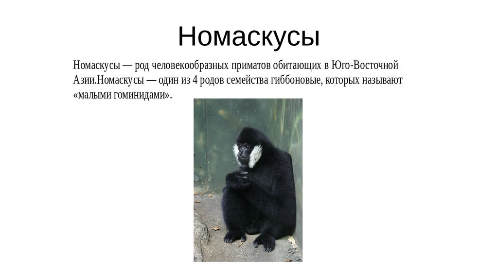 НомаскусыНомаскусы — род человекообразных приматов обитающих в Юго-Восточной