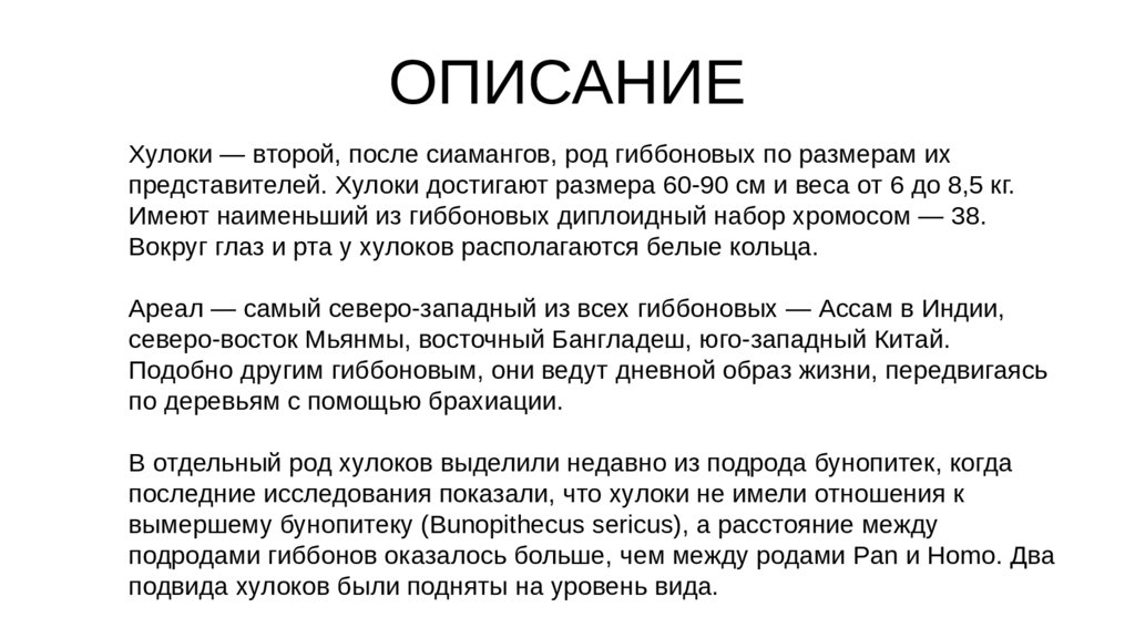 ОПИСАНИЕХулоки — второй, после сиамангов, род гиббоновых по размерам их