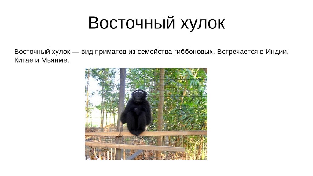 Восточный хулокВосточный хулок — вид приматов из семейства гиббоновых. Встречается в Индии,