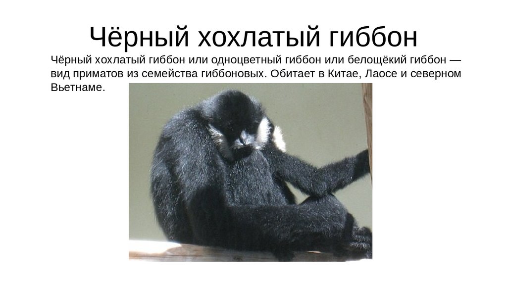 Чёрный хохлатый гиббонЧёрный хохлатый гиббон или одноцветный гиббон или белощёкий гиббон —